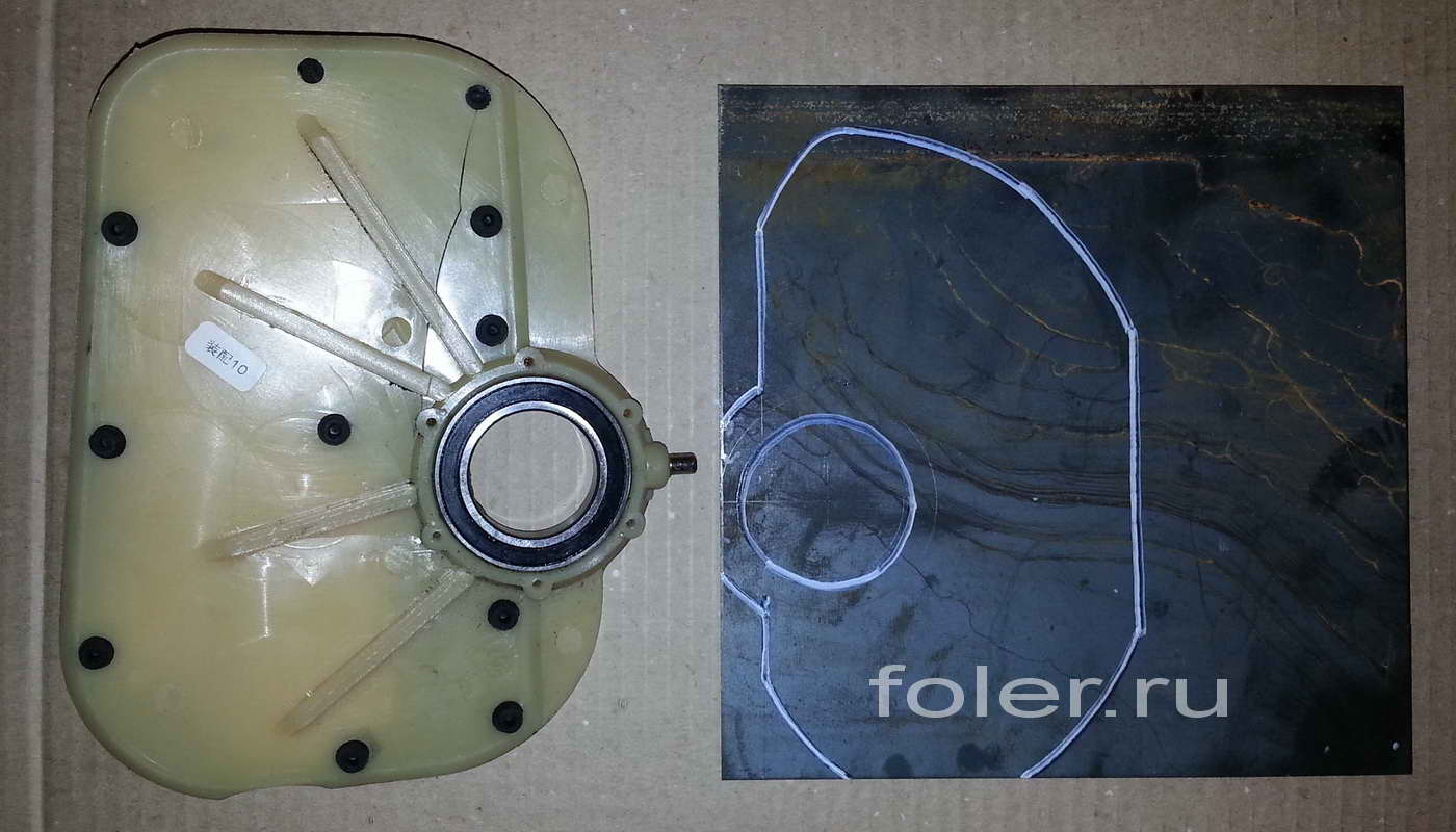 Изготавливаем стальную накладку из листа толщиной 3 мм. Размечаем и вырезаем ("болгарка", дрель, зубило, напильник).