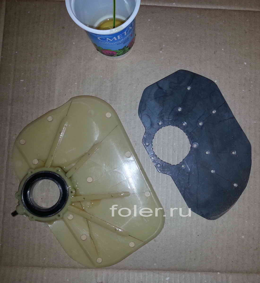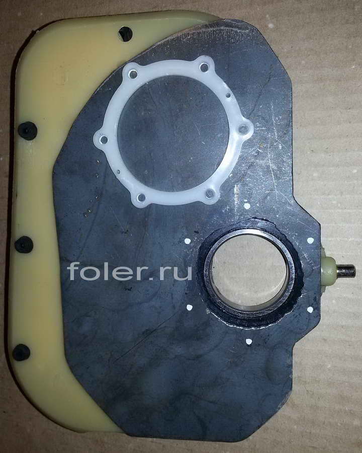 Снимаем стопорное кольцо съёмником, откручиваем подшипниковую опору и снимаем с вала вместе с подшипником. Далее снимем второе стопорное кольцо и лопатку с вала (фото с уже снятой лопаткой и подшипниковой опорой)..