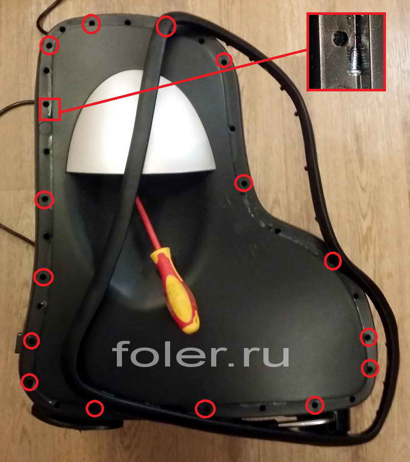 Снимаем правую боковую панель массажера, нужно открутить 16 шурупов.