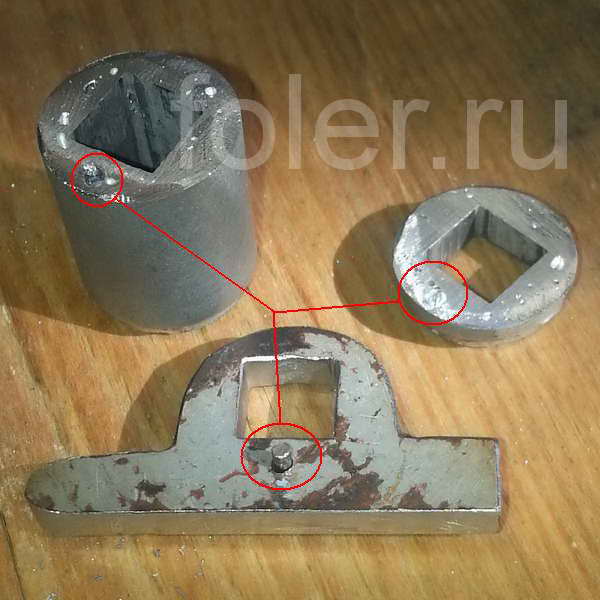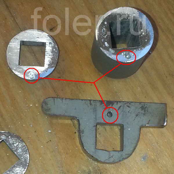 Надфилем дорабатываем круглое отверстие в квадратное.