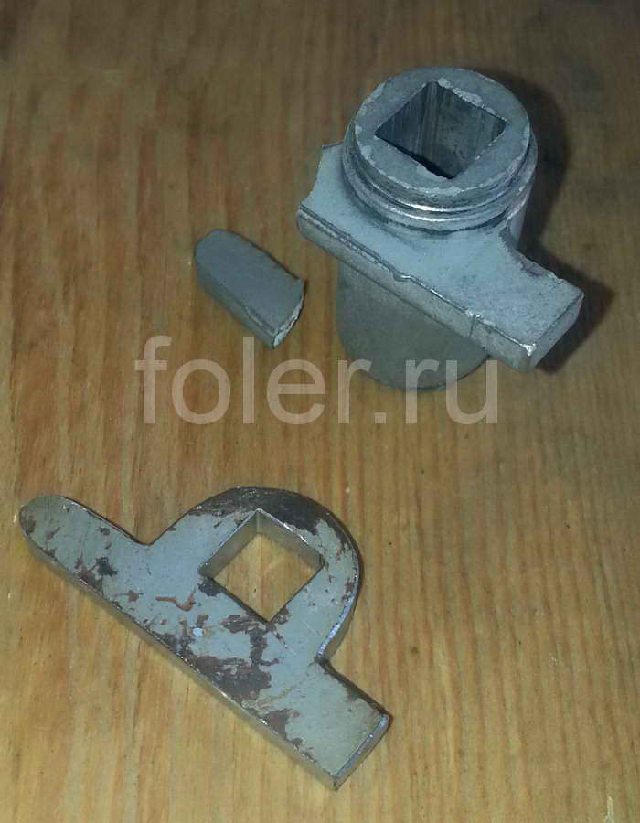 Что делать если вдруг не открыть дверь, заклинило замок, как открыть и как отремонтировать. Если у Вас установлен замок Эльбор, и однажды повернув ручку дверь не открылась, то наиболее вероятной причиной является поломка вышепоказанной детали. Обычно ломается только один рычаг, так что провернув ручку на 180 градусов можно открыть замок вторым, противоположным рычагом. Конструкция накладной ручки помешает это сделать, так что нужно снять накладку чуть вытащить квадратный стержень (чтобы он вышел из зацепления с ручкой на противоположной стороне двери) и провернуть его. Для ремонта можно попробовать купить такую же новую деталь. Я пробовал обратиться напрямую к заводу изготовителю, но предложили продать новый замок (причем в 1,5 раза дороже чем он же в супермаркете). Решил восстановить старую деталь подручными средствами.